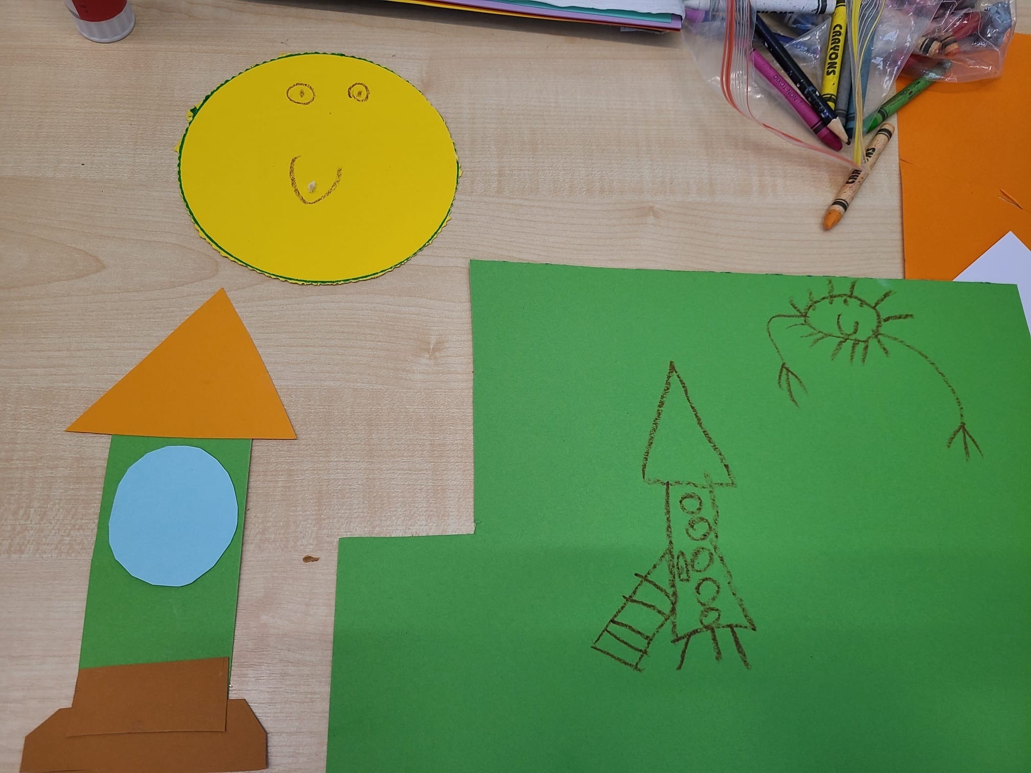 Our after-school club started at 3:30pm, and many of the kids headed straight to the arts and crafts table to get started on the rocket ship activity. Both boys and girls loved creating their own. We spent a wonderful time together around the table.