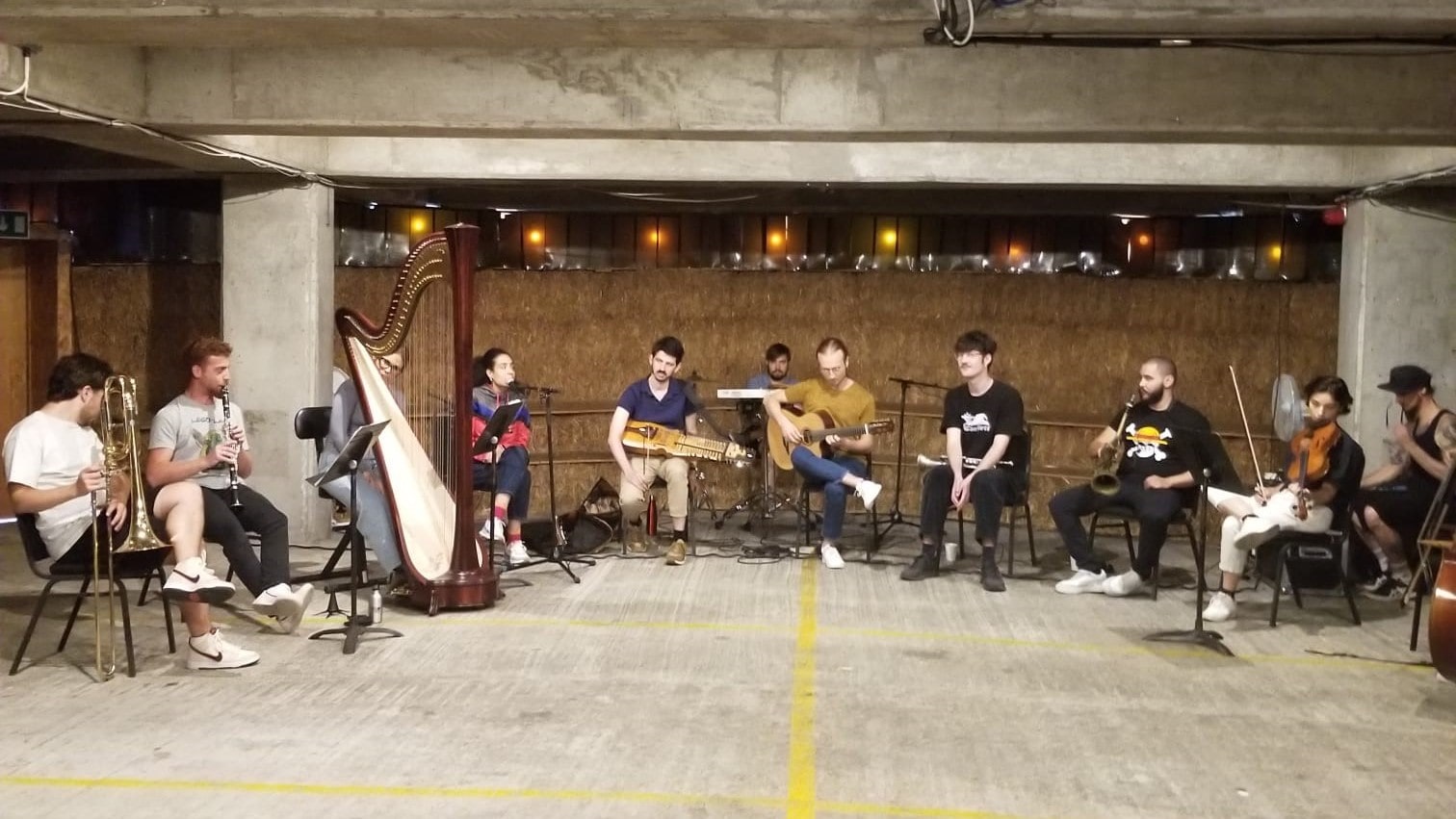 The real magic awaited us one level below. Tucked within the concrete expanse was the Straw Auditorium, an unexpected oasis. The scene was set with the soulful sounds of a cello played by a lady at the entrance, drawing us into this enchanting space. Designed by Practice Architecture, the auditorium's rustic charm was crafted from straw and sustainable materials, with intricately woven walls that seamlessly blended nature and craftsmanship. Inside, the cool, earthy air carried the scent of natural materials. Sunlight filtered through small openings, casting dappled patterns on the concrete floor, inviting us to pause and soak in the serene beauty of this sustainable sanctuary above bustling Rye Lane.