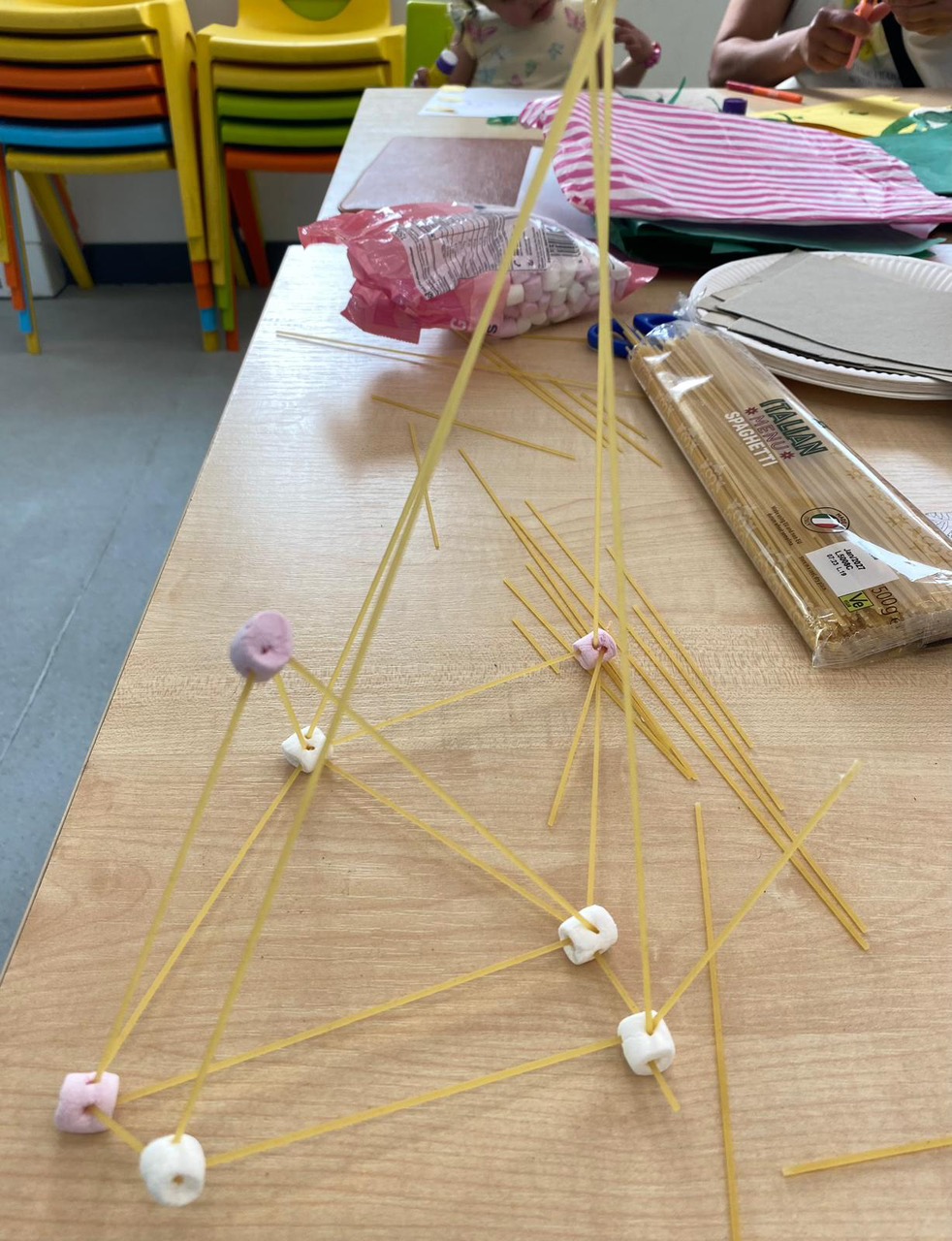 Our group activity this week was building towers made out of spaghetti! We made triangles to create a solid foundation, and used marshmallows and blu tack to fix our structures together.